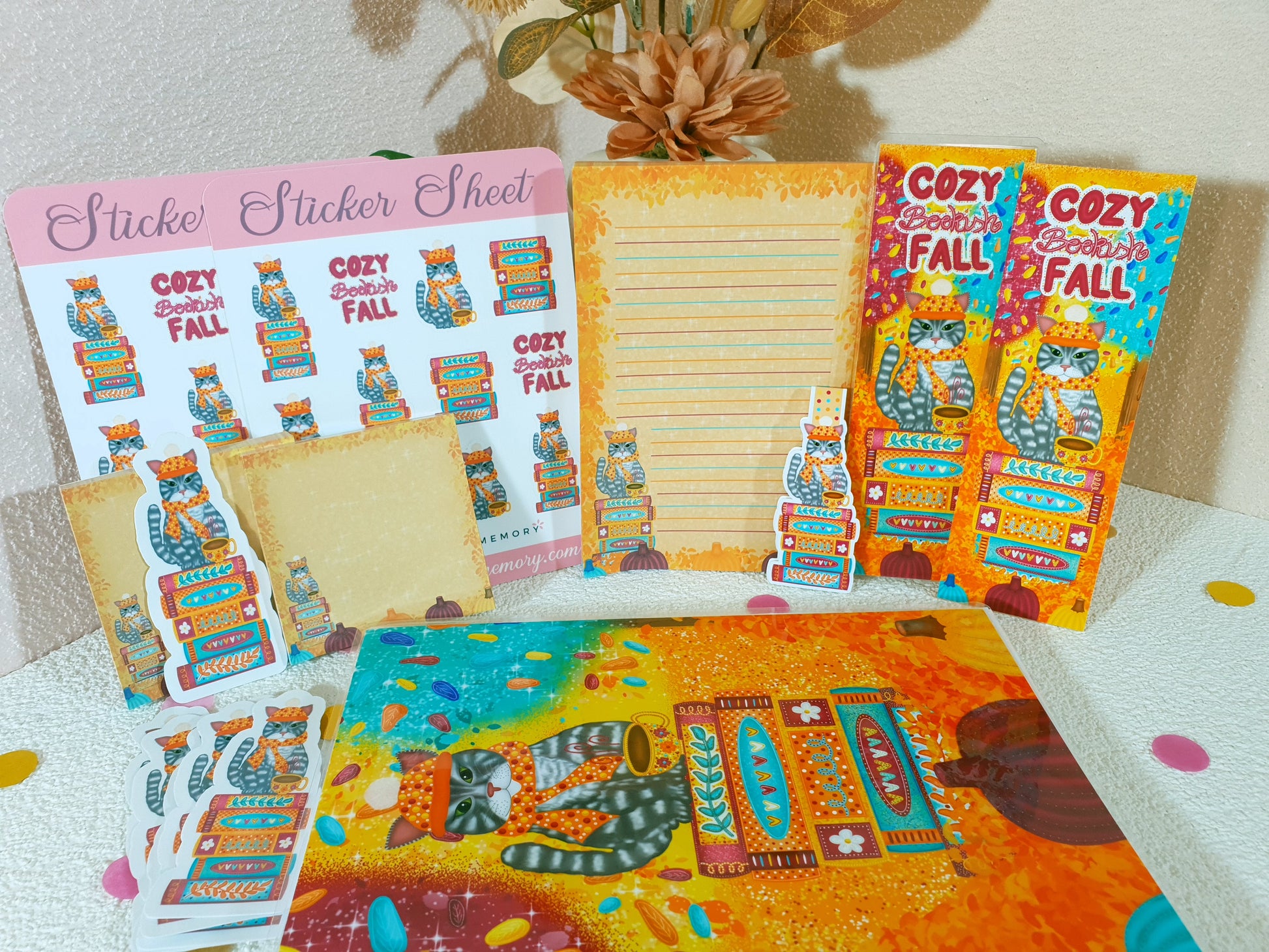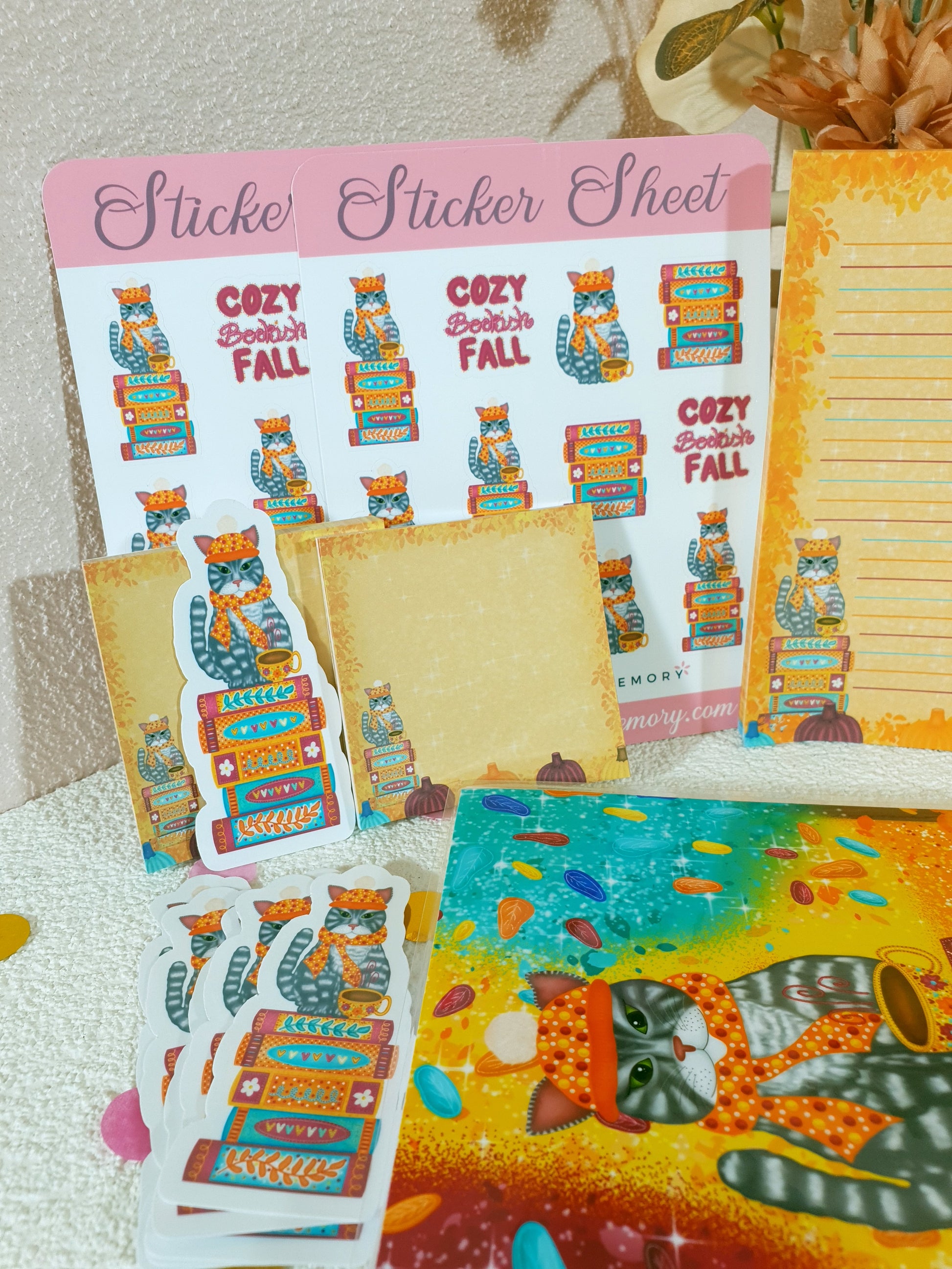 Hülle dich in die Magie des Herbstes mit dieser rundum gemütlichen Kollektion! Das „Bücherkatze im Kuschelherbst“ Papeterie-Bundle vereint all deine saisonalen Lieblingsstücke in einem liebevoll gestalteten Set – mit unserer beliebten lesenden Katze, umgeben von fallenden Blättern, warmen Getränken und literarischem Glück.