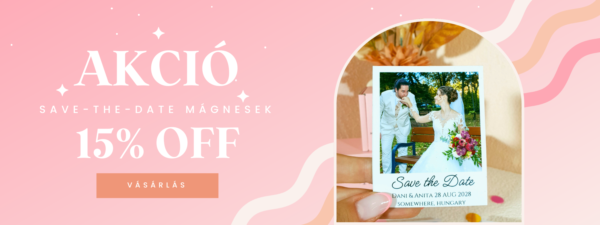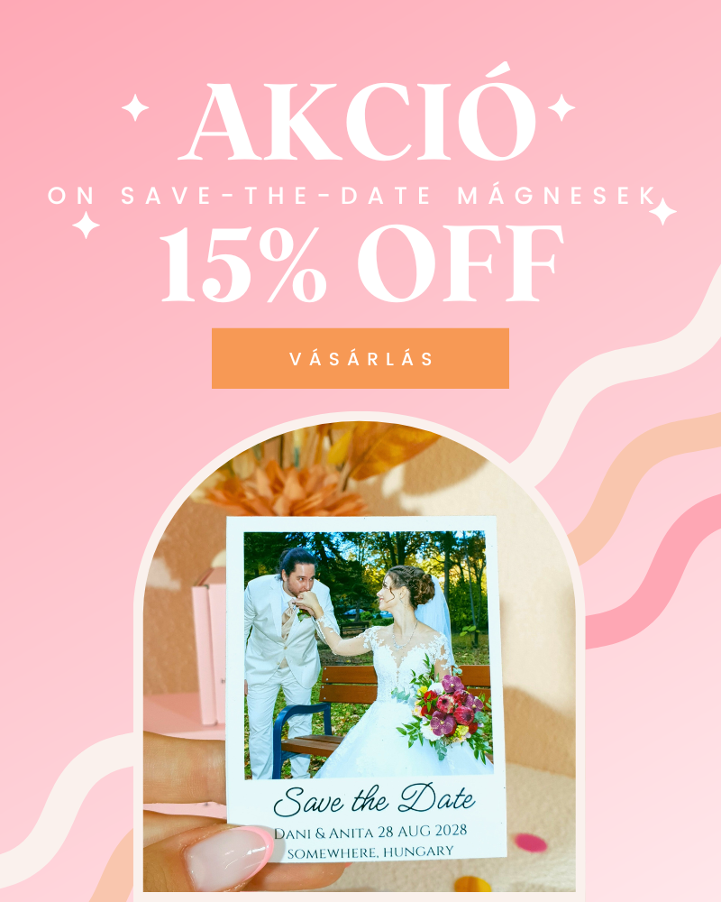 Jelentsd be a Nagy Napotokat a különleges Save the Date fényképes mágneseinkkel. Alkoss maradandó emléket vendégeid számára. Ezek a mágneses meghívók nemcsak elegánsak, de figyelmes emlékként is szolgálnak Nektek és szeretteiteknek.