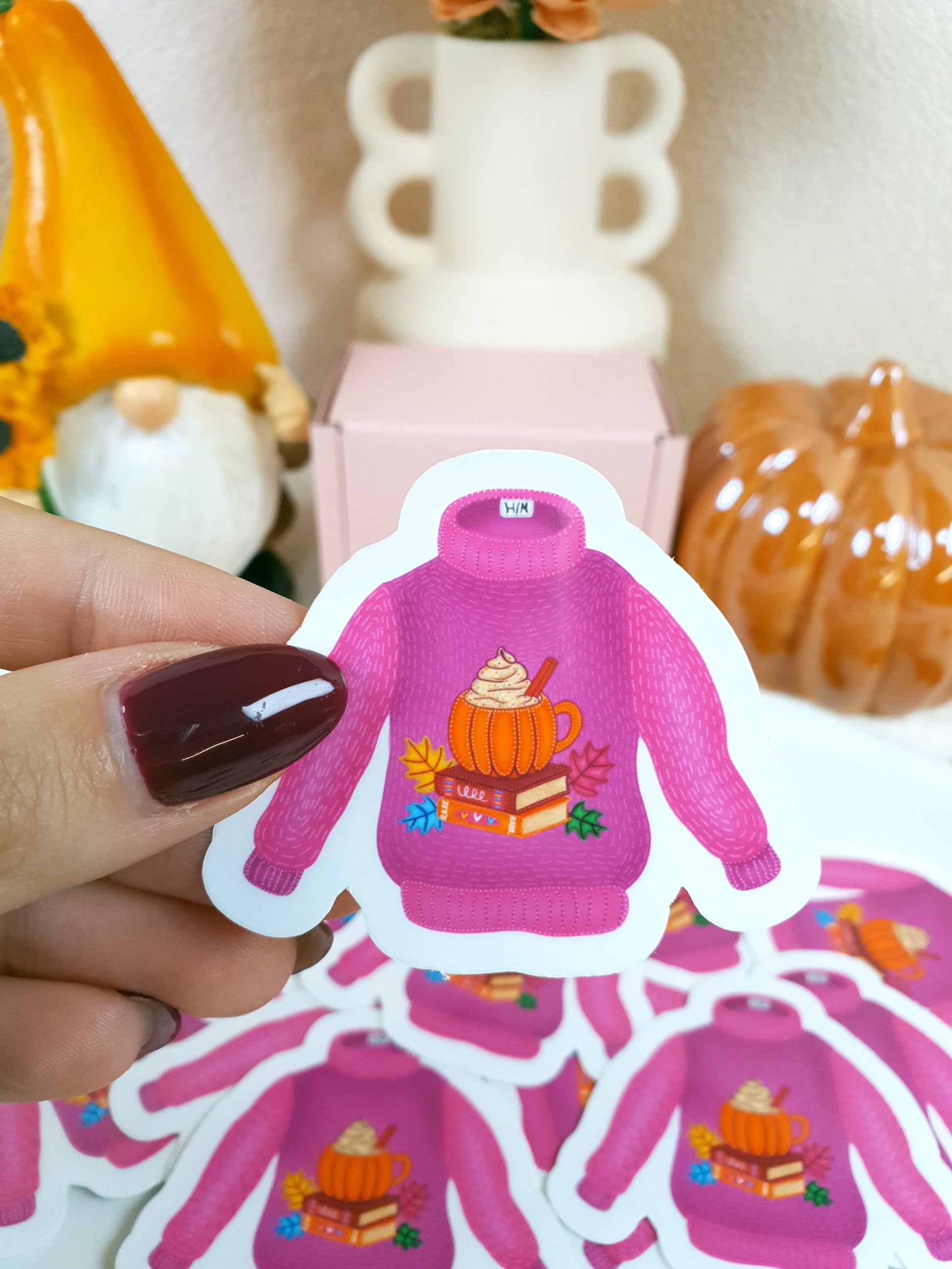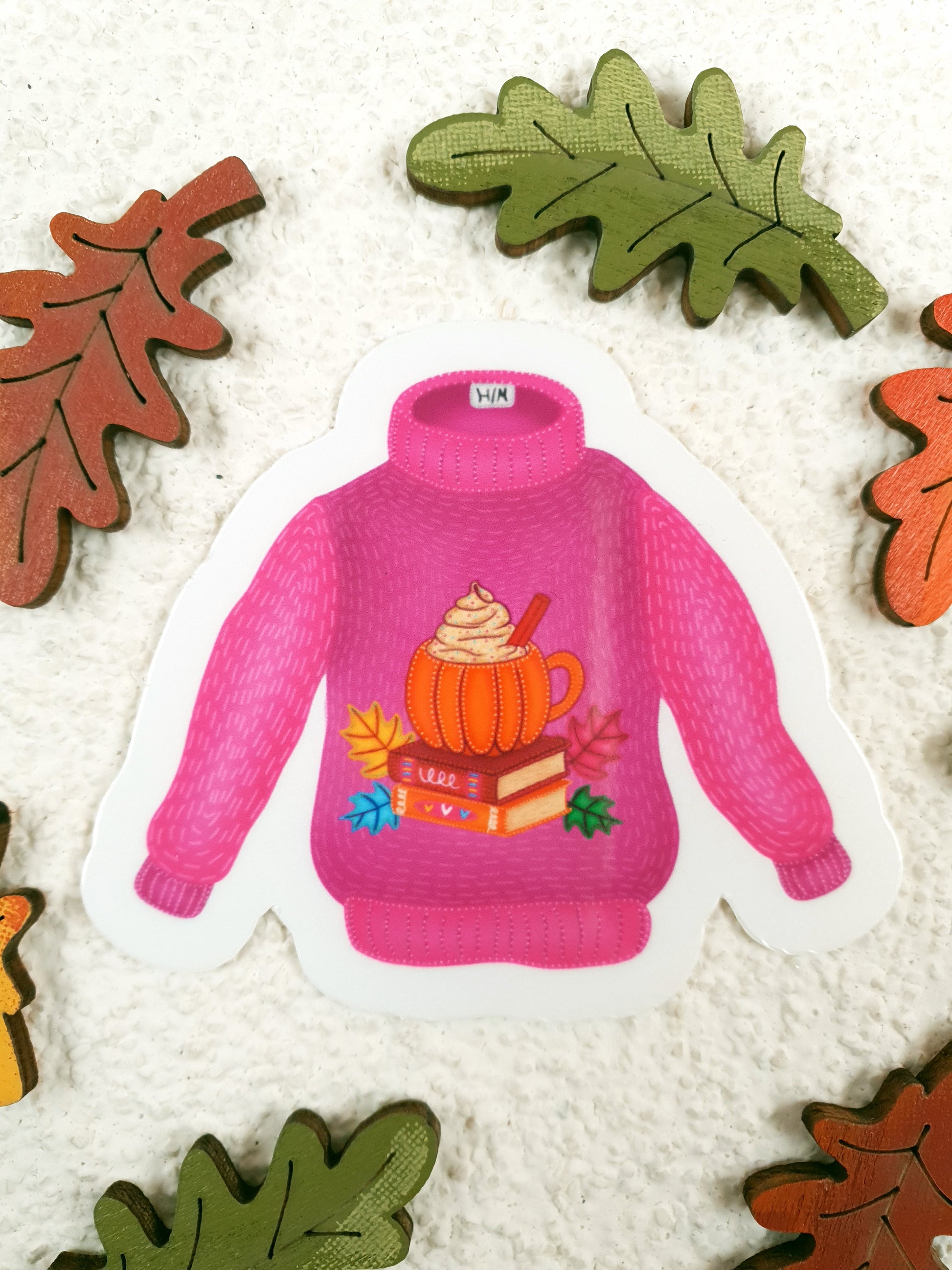 Öleld át az őszi hangulatot ezzel a bájos vinyl matricával, amely tökéletes kiegészítője lehet naplóknak, tervezőknek vagy ajándékcsomagoknak. A kézzel illusztrált rózsaszínes-lila pulcsi tököt, gőzölgő italt, színes faleveleket és könyvkupacot rejt – igazi kuckózós, könyves pillanatokat idéz. Vízálló, tartós és tele szezonális örömmel – mint egy tökéletes őszi délután.
