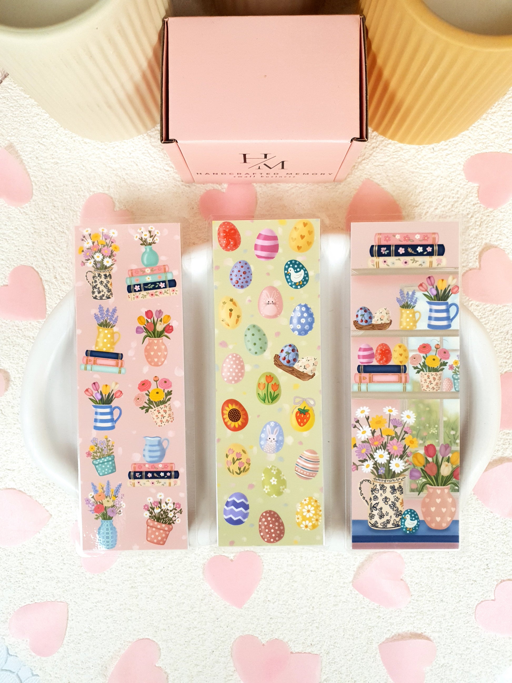 A charming set of hand‑illustrated spring bookmarks featuring pastel florals, Easter eggs, and cozy bookish details. Printed on premium cardstock, these whimsical bookmarks are perfect for Easter reading, seasonal gifts, and adding a soft spring touch to your favorite books.
