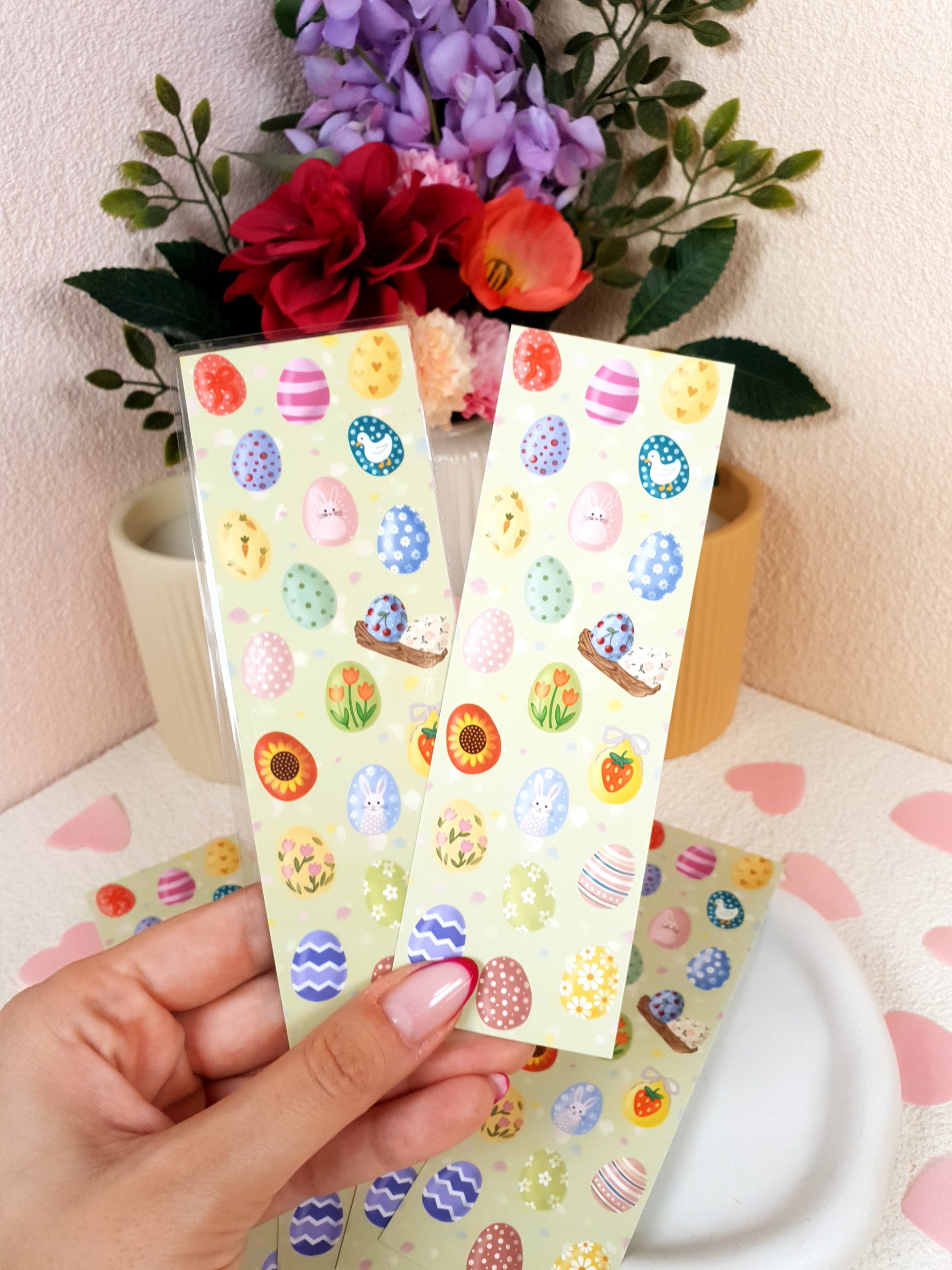 Celebrate Easter with this hand‑illustrated bookmark featuring colorful, patterned eggs and soft pastel tones. Printed on premium textured cardstock, it’s a charming companion for spring reading, journaling, or gifting — perfect for book lovers who adore cozy, seasonal designs.