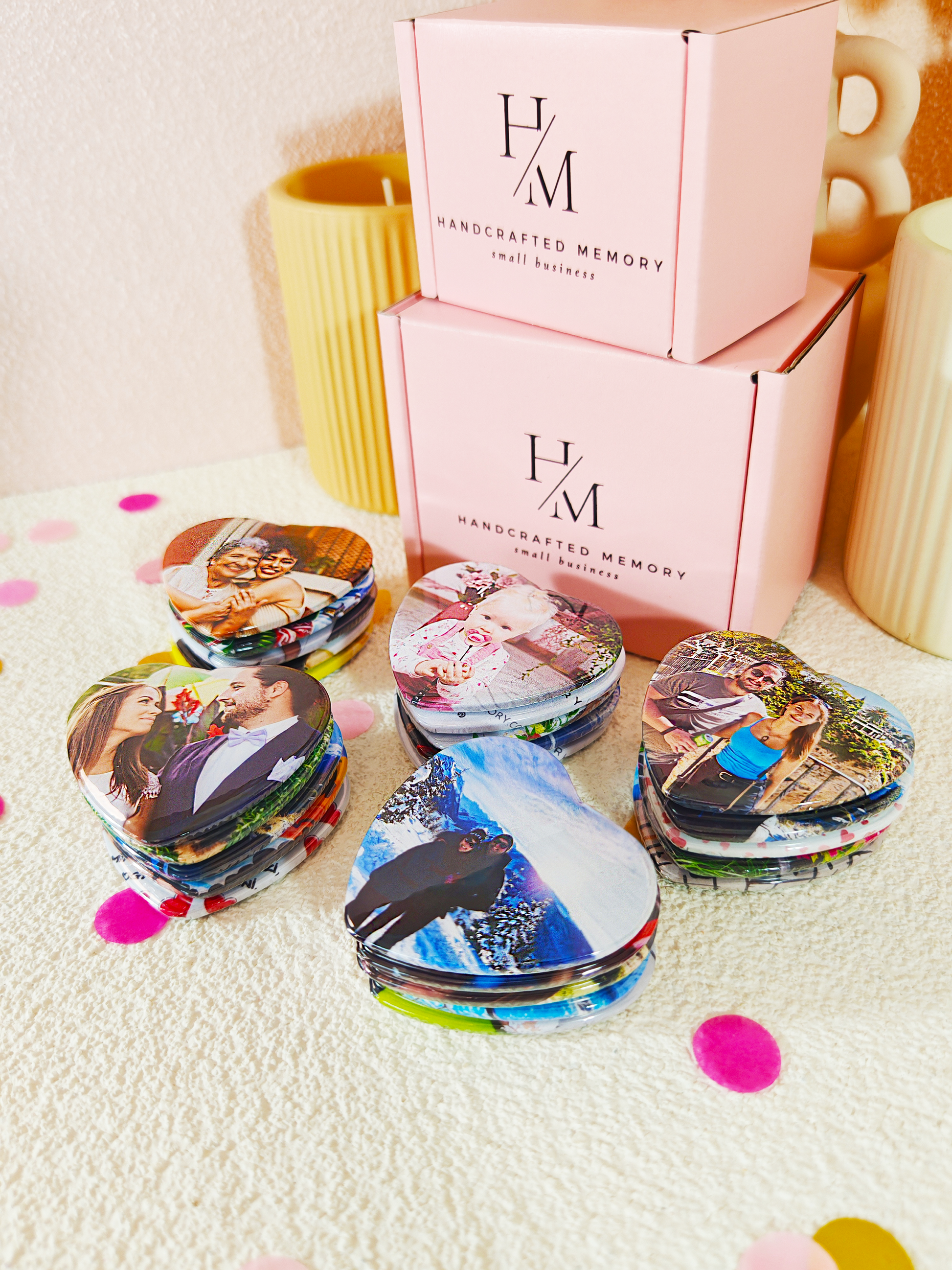 Capture the joy of weddings, baby announcements, anniversaries, holidays and more with our beautifully crafted custom heart magnets. Designed to celebrate love and memories. These magnets are an ideal gift for family and friends, making every moment unforgettable and also perfect for business use. Elevate your business cards and events with our high-quality magnets.