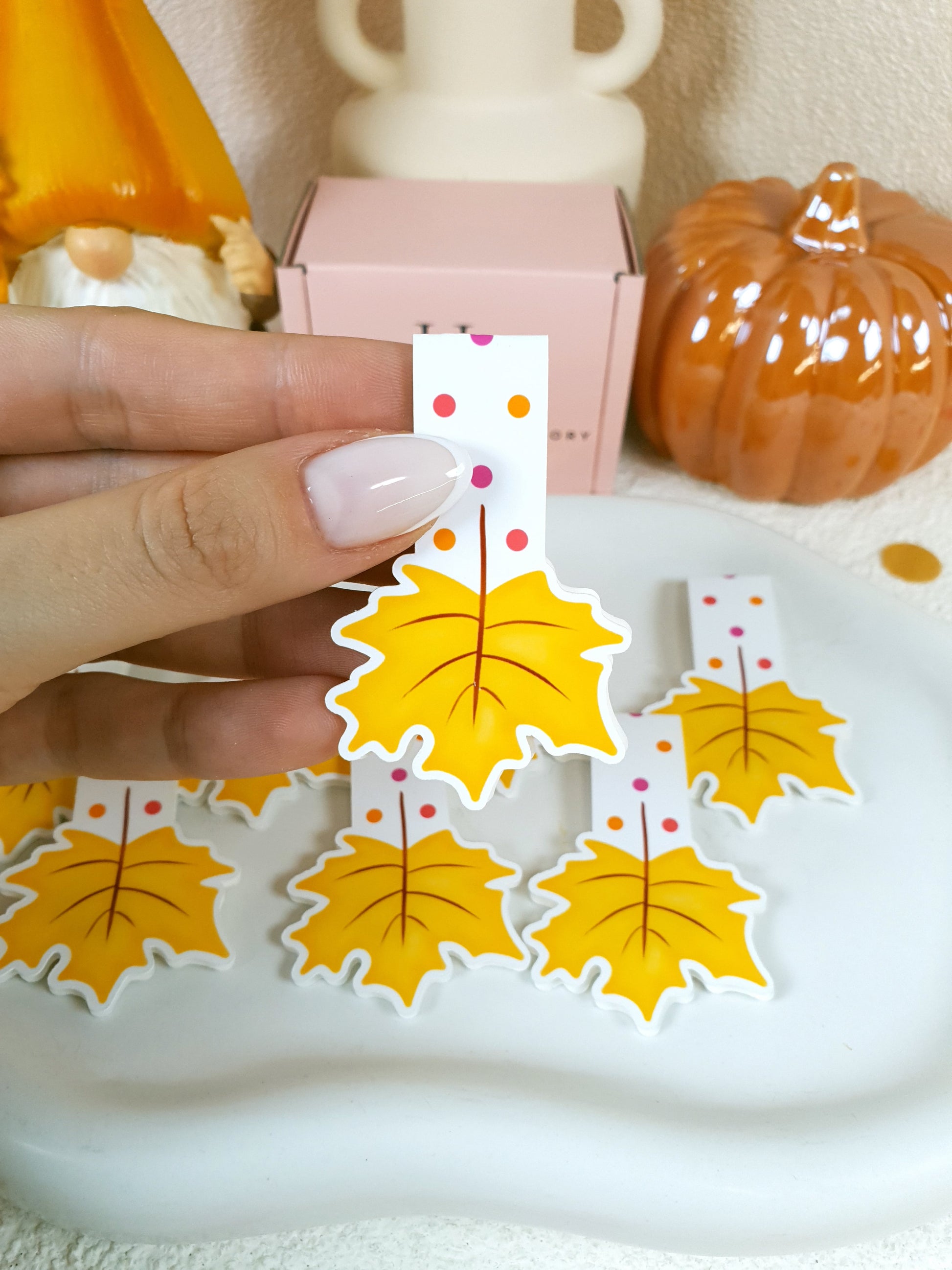Add a touch of autumn charm to your reading routine with this vibrant magnetic bookmark! Shaped like a golden maple leaf with playful red and orange dots, it brings the cozy spirit of fall right to your pages. Strong magnets ensure it stays in place—whether you're lost in a novel or jotting down seasonal thoughts.
