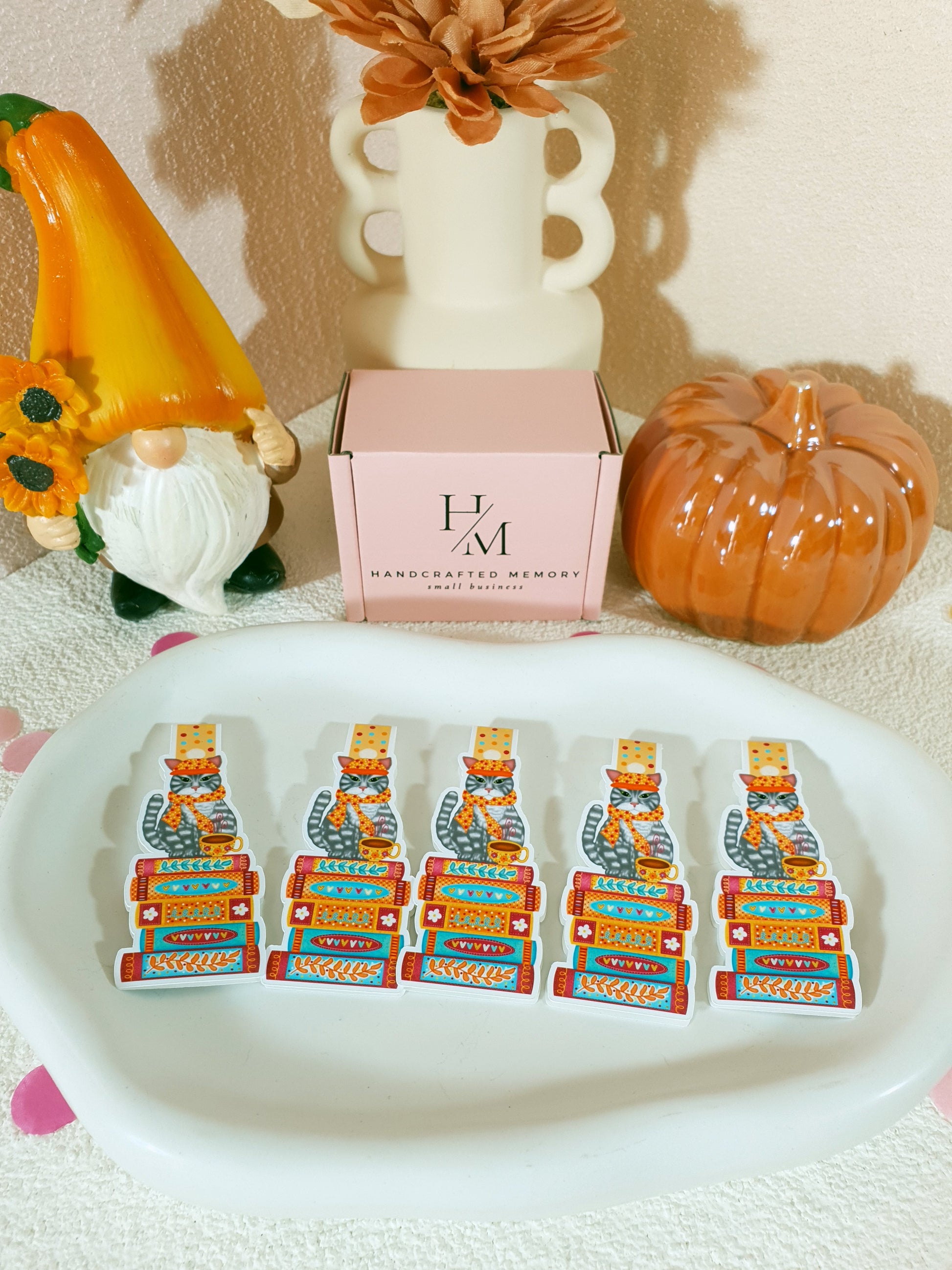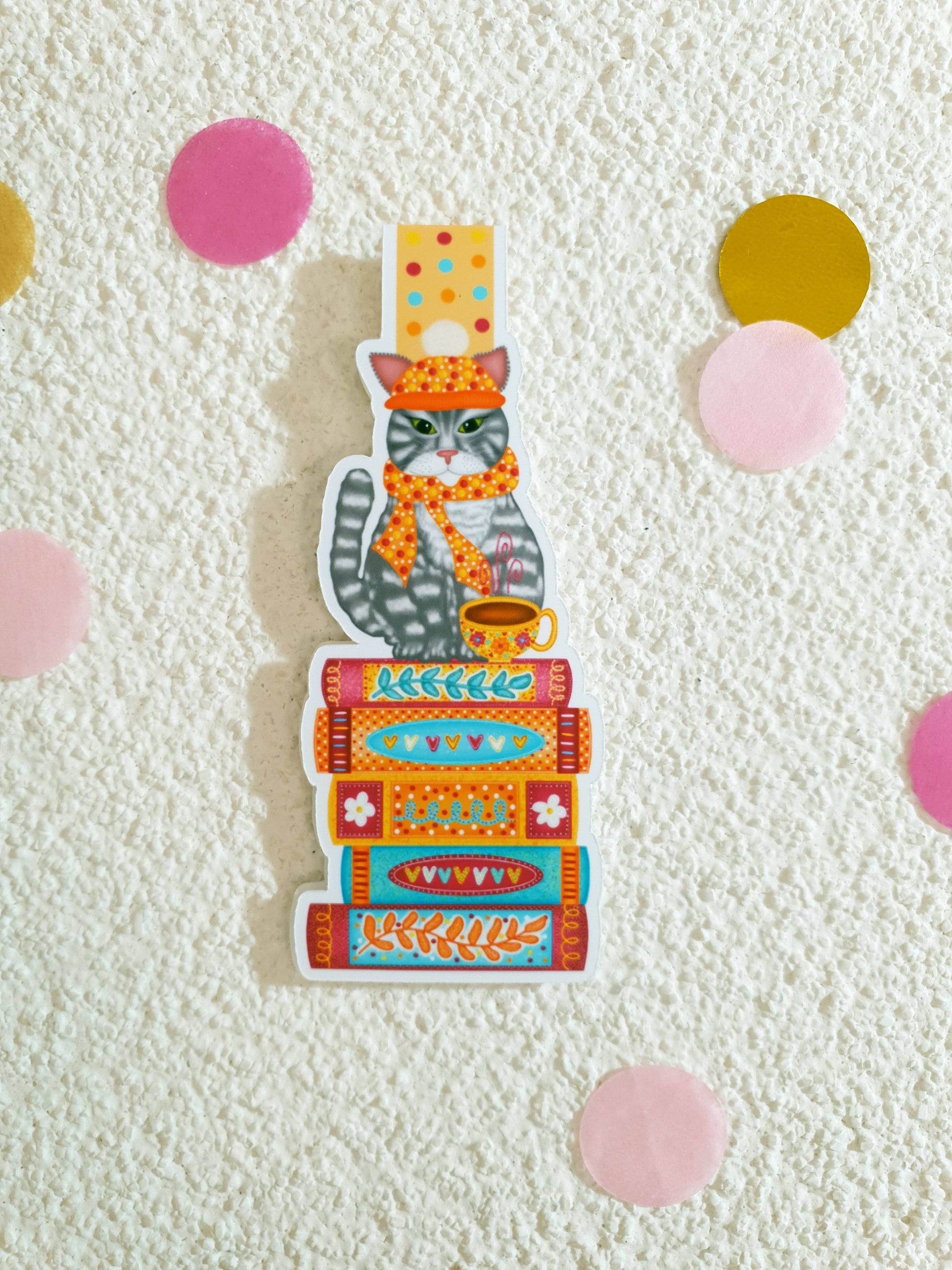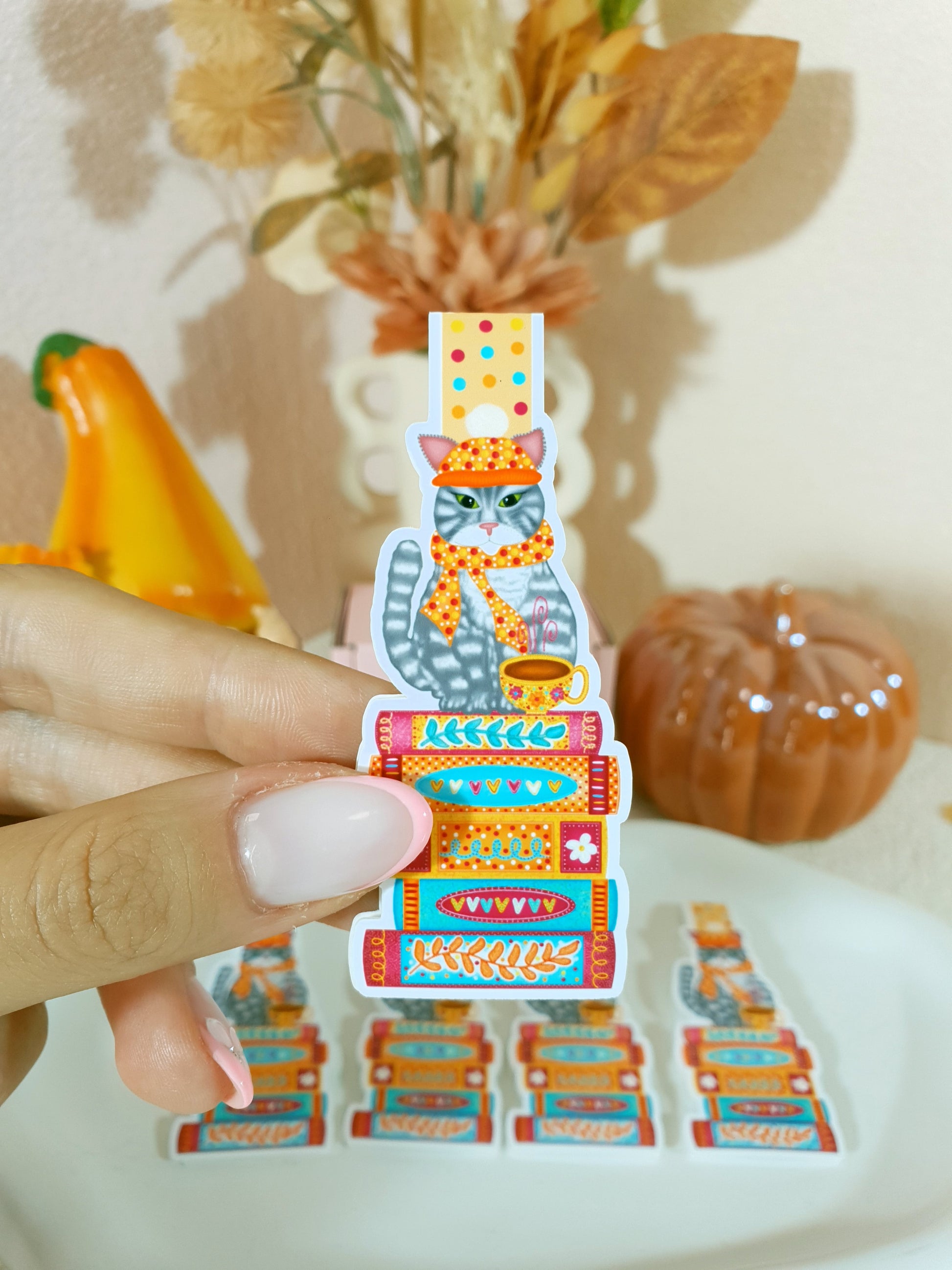 Wrap yourself in the charm of autumn with our Bookish Cat in the Cozy Fall magnetic bookmark – the purr-fect companion for your reading adventures. Featuring an irresistibly cozy feline nestled among falling leaves and steaming mugs, this little bookmark brings a touch of seasonal magic to every page you turn.