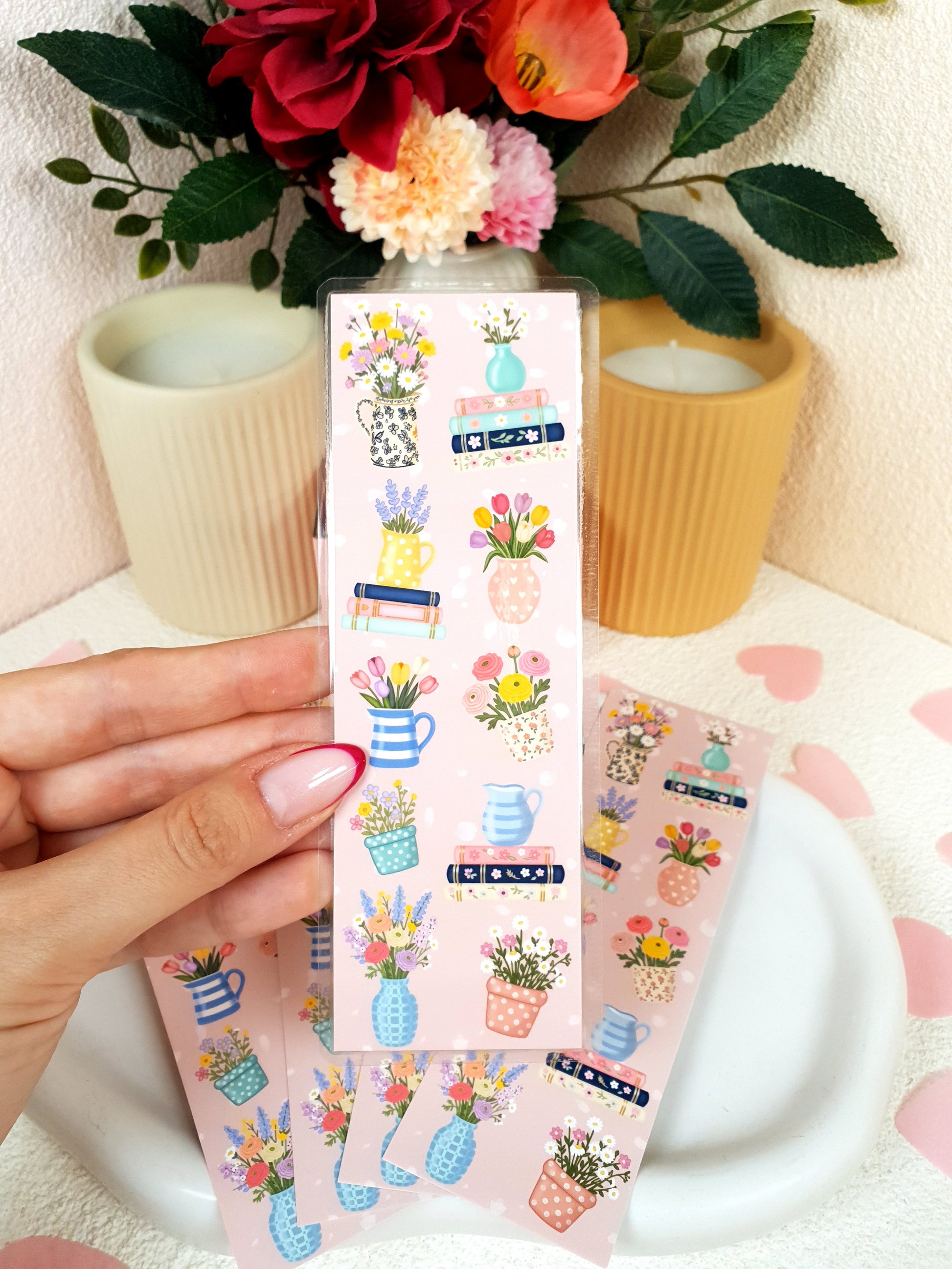 A hand‑illustrated bookmark featuring charming spring florals, patterned vases, and soft pastel tones. Printed on premium textured cardstock, it adds a gentle touch of color to your reading routine — perfect for book lovers, seasonal gifts, and cozy springtime moments.